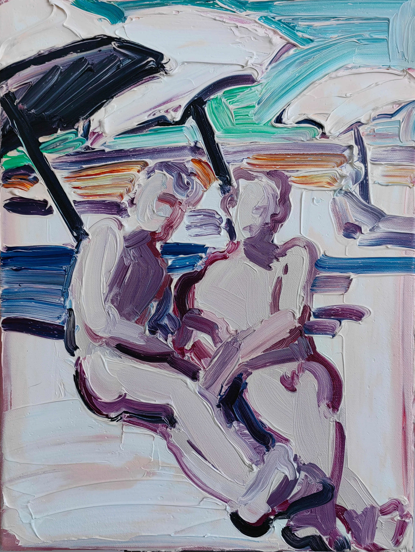 Hotest spot under the umbrella, 30x40 cm, oil on canvas, 2023