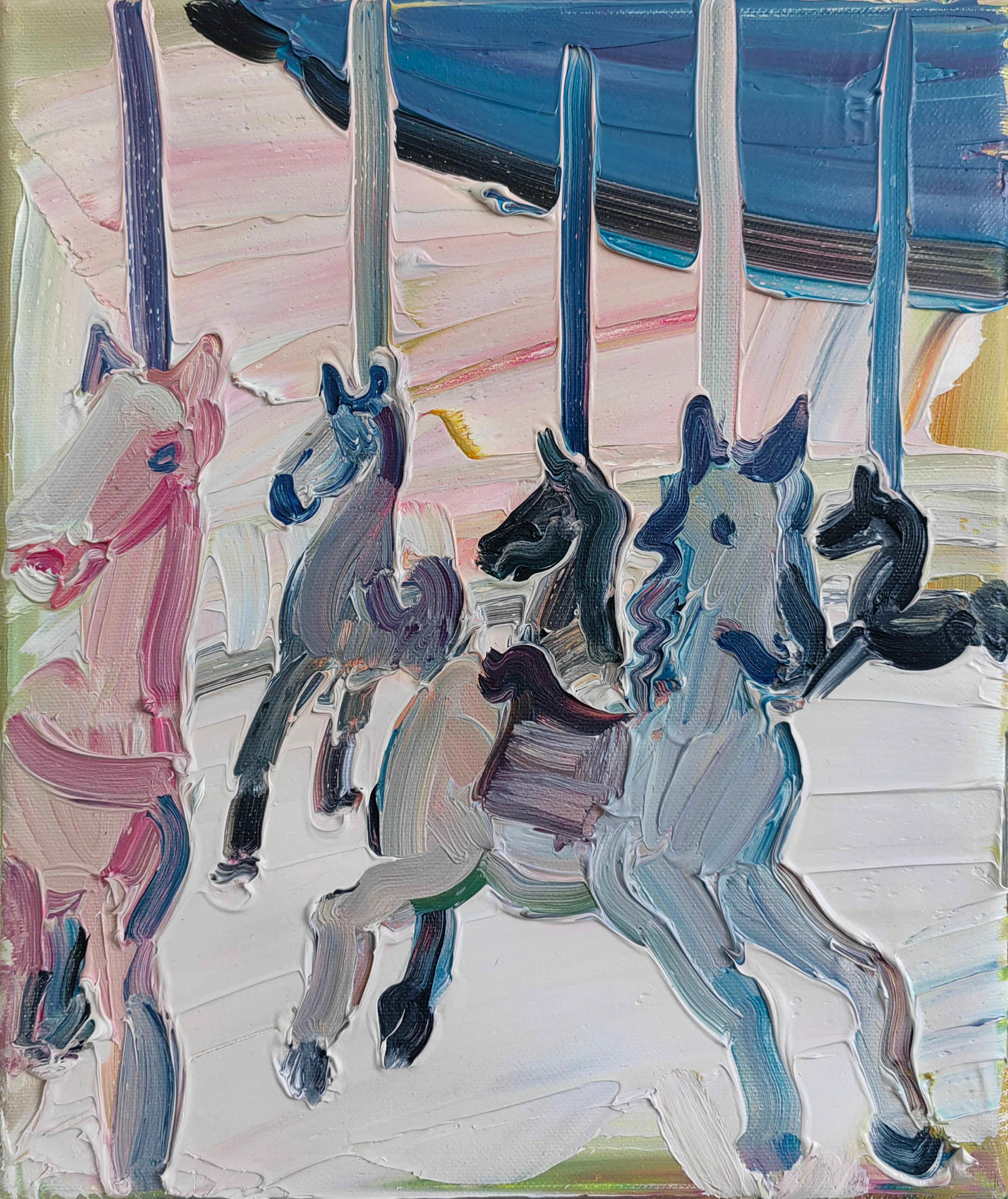 Who will catch up with whom, 30x40 cm, oil on canvas, 2023
